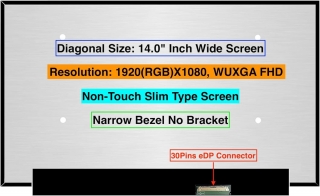 Экран 14.0′′ LED SLIM (30PIN) (NO BRACKET 315MM) FULL HD + IPS (1920 x 1200) NEW